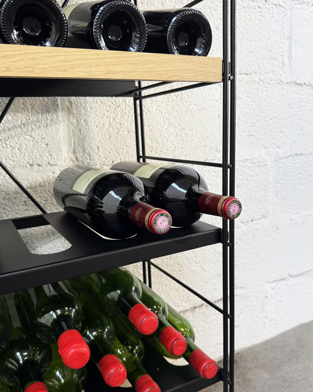 The Skin Modular Wine Rack System is built with heavy-gauge 8mm powder-coated steel, providing exceptional strength and structural stability.