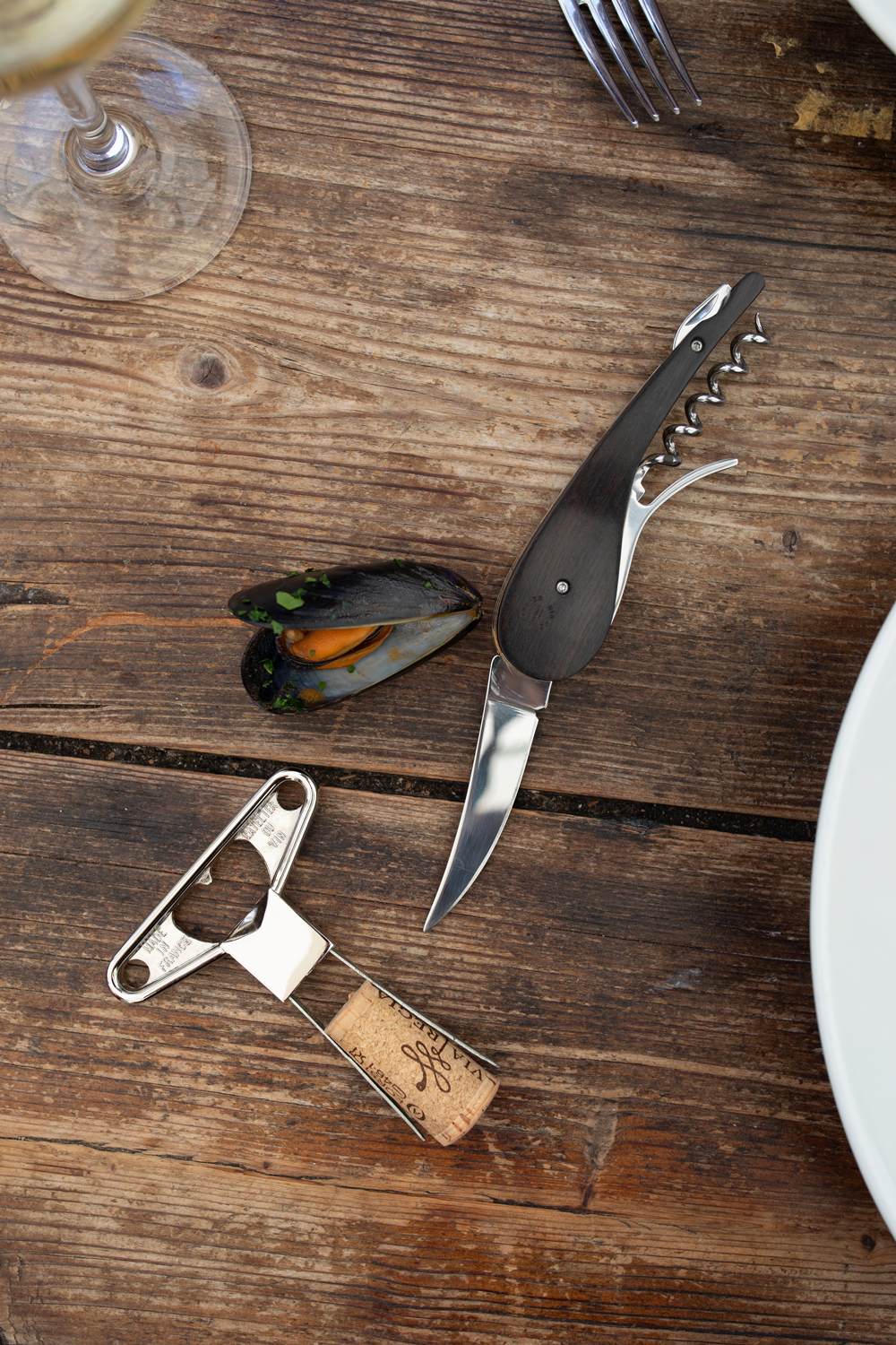 – A larger folding blade, inspired by classic pocketknives, ideal for slicing cheeses, breads, or cured meats during a tasting or picnic.
